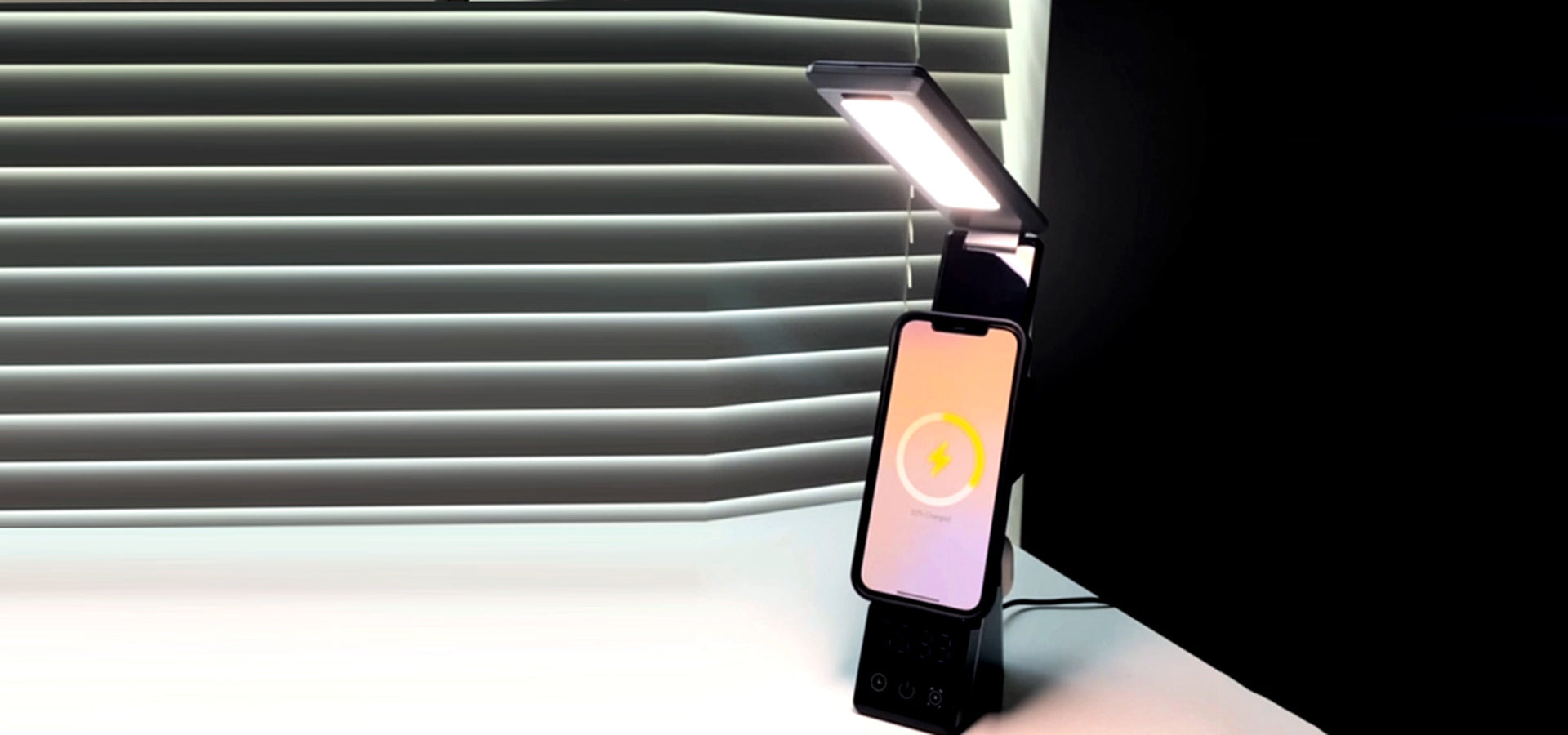 The LumiCharge Mini Lamp is a small, portable lamp that features a built-in Wireless Charging, making it a convenient way to charge your devices while also providing a source of light. It also has multiple color and brightness settings, and can be used as a bedside lamp or a desk lamp.