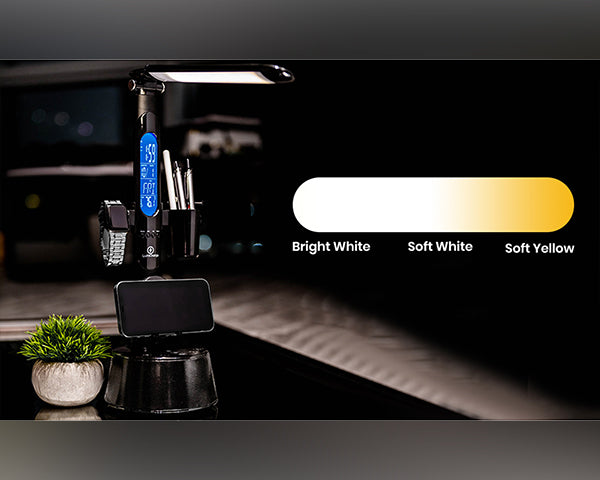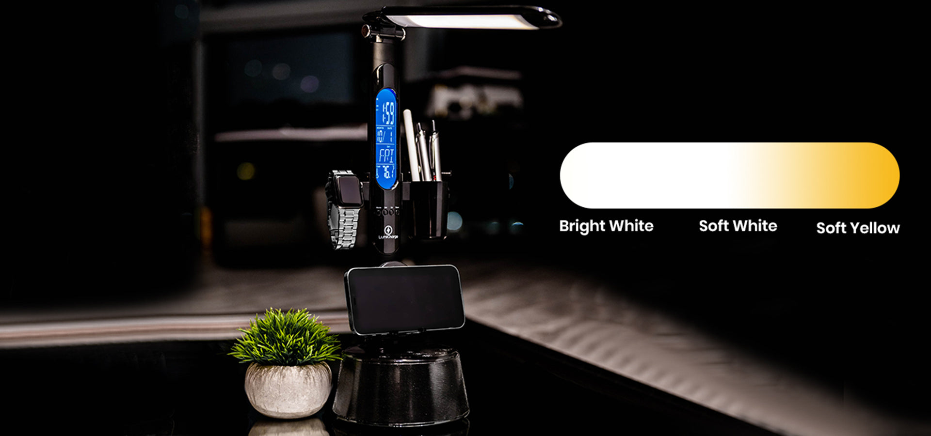 Lumicharge T2W is the perfect addition to any workspace. The lamp also features a 3 Color light, so you can adjust the brightness and it's color to your desired level. Upgrade your workspace with the convenience and style of the Lumicharge T2W. With its sleek and modern design, it not only provides bright, adjustable lighting, but also has a built-in wireless charging pad for your devices. No more cluttered cords or searching for charging adapters.