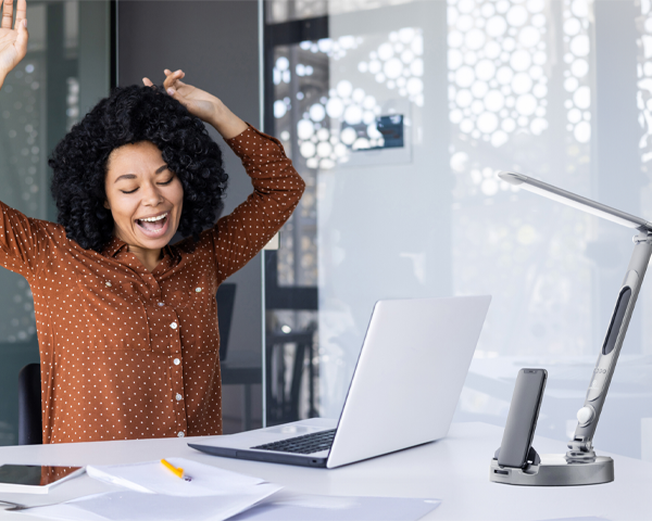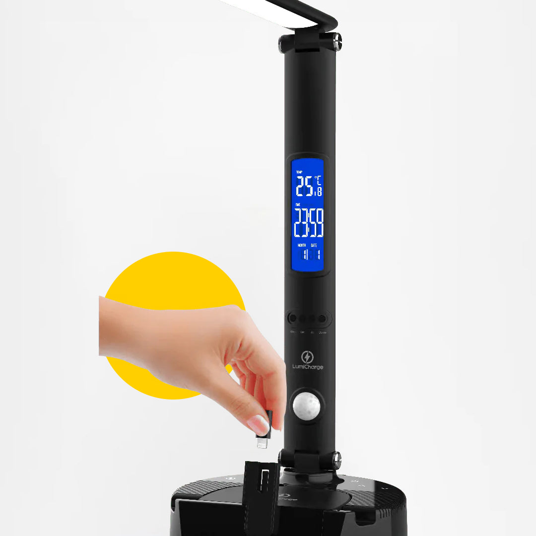 Relocate LumiCharge III wherever you need it. With its flexible neck and adjustable arms, it easily fits any study space.